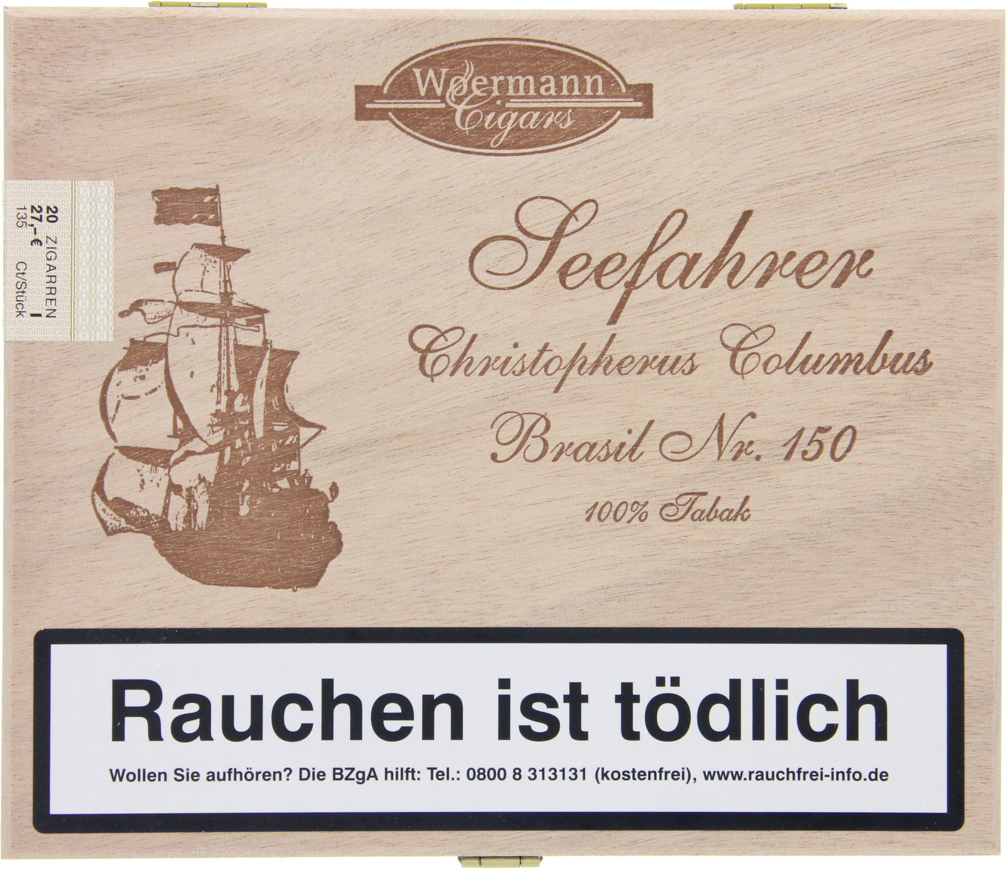 Woermann Cigars Seaman 100% Tobacco Corona Christopherus Columbus Brasil No. 150