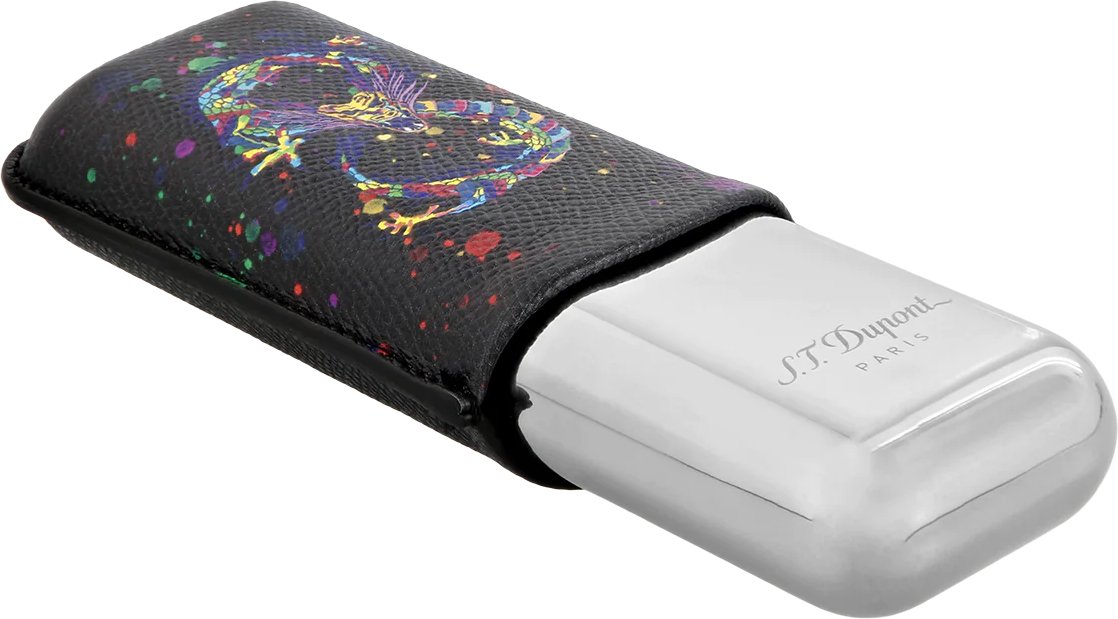 S.T. Dupont Zigarren Etui Metall 2er Dragon noir/chrome (183277)